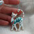 Description : collier avec un pendentif tortue (2 cm) et une chaine de 40 à 45 cm en acier doré. La chaine est fantaisie avec des petites perles. Le dos de la tortue est en émail pailletée bleue. Fermeture classique par mousqueton. Bijou porte-bonheur. Coloris au choix