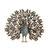 Description : belle et grande broche en métal doré. La broche est en forme d'un paon faisant la roue. L'oiseau est décoré de petites pierres d'imitation bleues et vertes qui rappellent les couleurs des plumes de paon. La broche peut être utilisée en pendentif car un anneau est prévu à cet effet. La broche est grande et peut servir pour fermer un châle, une étole, une cape ou orner un manteau. Dimension : hauteur : 6 cm, largeur : 7,2 cm.