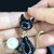 Description : jolie broche motif chat en métal couleur dorée. Le chat est gris. Il est représenté assis avec une perle d'imitation blanche entre ses pattes Joli détail, le chat porte un collier avec des petites perles blanches autour du cou. Le papillon est décoré de strass transparents discrets. La broche est petite. Dimension : 3,4 cm x 2 cm.