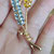 Description : collier en acier doré avec des sept petites pampilles imitation pierre. Les pampilles sont multicolores : jaune, rouge, bleu, vert, violet, rose, transparent. Les pampilles sont très petites (0,5 cm). Ce collier se porte assez court, à la clavicule. Il peut se régler de 40 à 45 cm. Pour une allure chic et bohème.