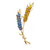 Description : jolie broche représentant un bouquet de deux épis de blé. Le premier épi est décoré de pierres d'imitation bleues claires. Le second est recouvert de pierres jaunes. Cette broche est de belle finition et les détails sont soignés. Alliage métal couleur dorée. Dimension : 6,5 cm x 3 cm. Pour offrir ou accessoiriser une veste ou une écharpe.