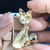 Description : broche en métal doré représentant un chat qui rampe. Dimension : 7,5 cm x 3,5 cm. Bon système de fermeture.